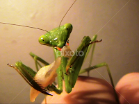 Pet praying mantis eating chicken