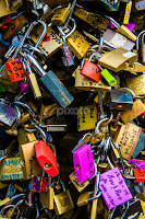 These locks are locked on the chain of a bridge in Amsterdam. people will lock their relationship.