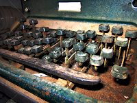 An old typewriter in my office. It sits alone and collects dust, watching its evoluted kins (computers) in use.