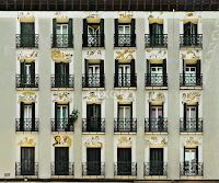 Calle Duque de Osuna n º 8 y Plaza Cristino Martos, Madrid. Dibujos en fachada: Antonio Mingote.