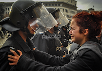 Crying girl over the policeman from the protests in Sofia, Bulgaria